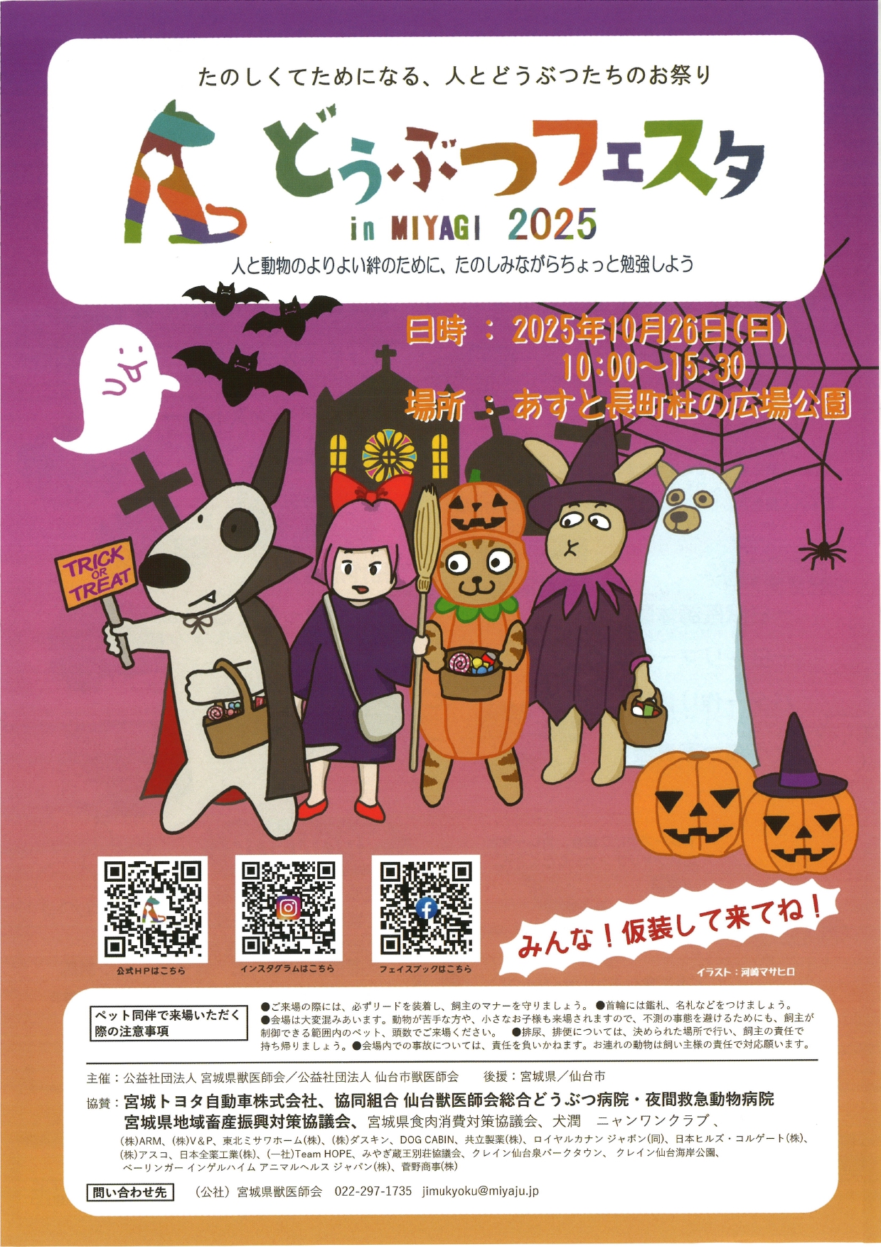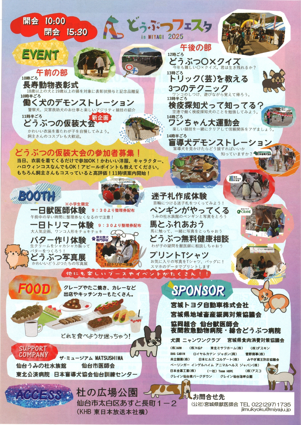 「どうぶつフェスタ in MIYAGI 2025」が今年も以下の日時、場所で開催されます。