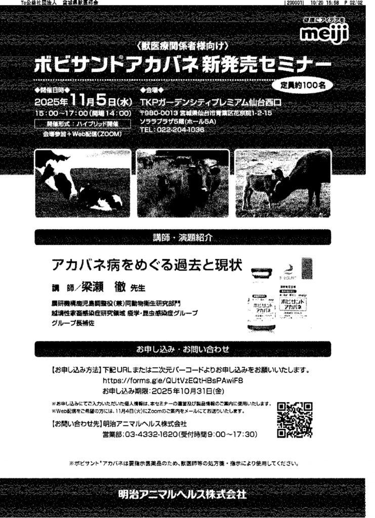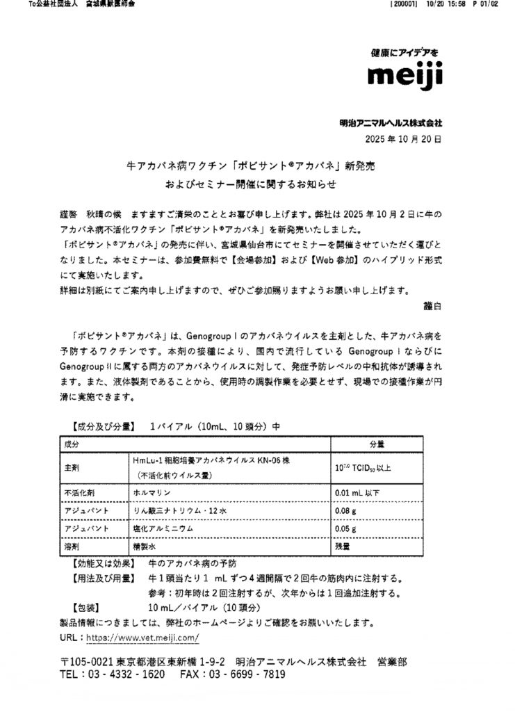 ■牛アカバネ病ワクチン「ボビサントアカバネ」に係るセミナーについて